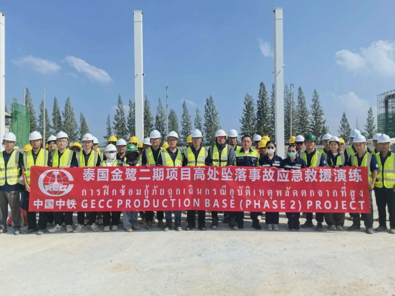 公司泰国金鹭项目开展高处坠落事故应急演练